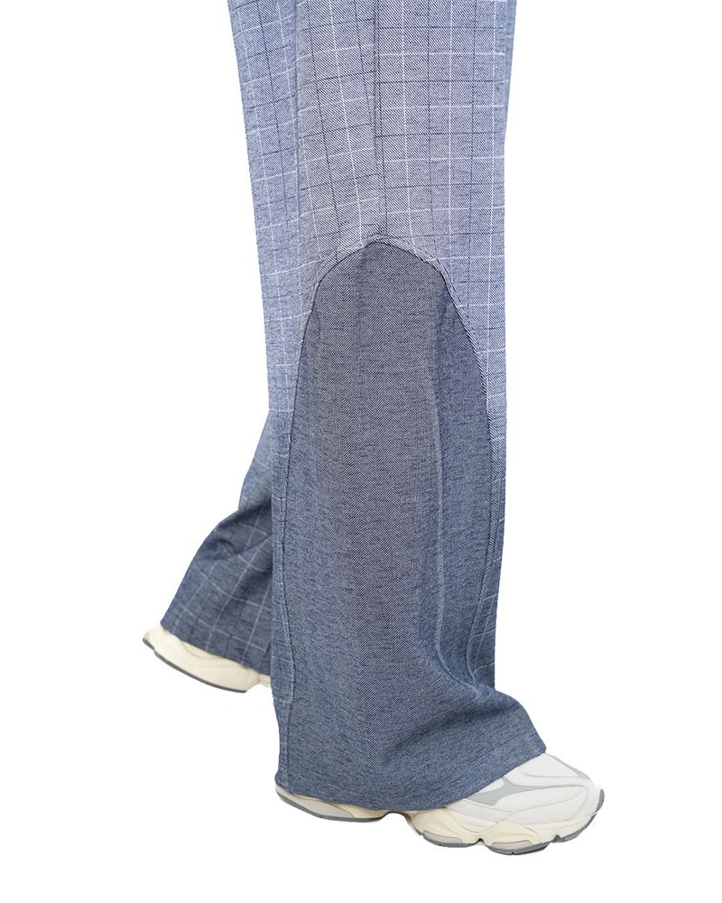El detalle disruptivo es el corte curvo en la parte inferior, que abarca frente y posterior en una onda fluida y asimétrica, generando una estructura dinámica que aporta fuerza a su caída. Esta silueta ondulada crea movimiento natural al caminar, con volúmenes controlados que estilizan las piernas y proyectan confianza urbana, rompiendo con lo convencional para un vibe arquitectónico.