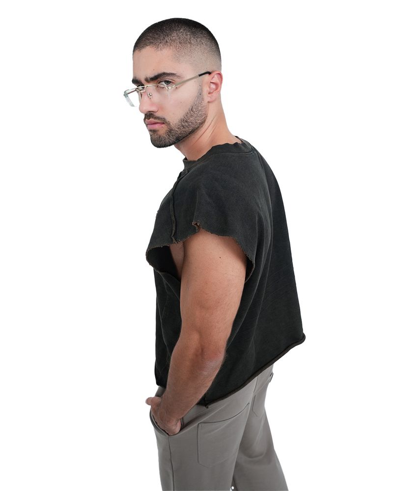 Esta camiseta masculina estilo tropel era presenta una silueta boxyfit que aporta una estética relajada y moderna. El delantero destaca por cortes estratégicos que simbolizan la conexión con el yo interior, reflejando un concepto de introspección en el diseño. Confeccionada en 100% algodón burda, la prenda ofrece una textura auténtica y resistente, enriquecida por un proceso de acid wash que le otorga un acabado desgastado y único. El detalle destroyer en las uniones de los cortes genera un efecto de “ruido” visual, evocando el caos y la complejidad interna que todos experimentamos. Las mangas y ruedos se presentan a láser, logrando un acabado preciso y contemporáneo. En el centro de la prenda, una técnica de alta densidad resalta el isotipo, tratado como la “corona” que corona esta pieza cargada de sentido. Finalmente, un banderín con el isotipo en el costado izquierdo refuerza la identidad de la marca, sumando fuerza y coherencia a todo el conjunto.